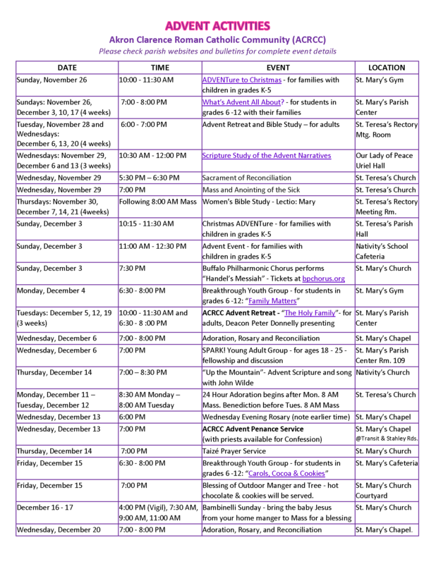 Advent Activities at St. Mary's, Nativity, Our Lady of Peace, and St. Teresa's